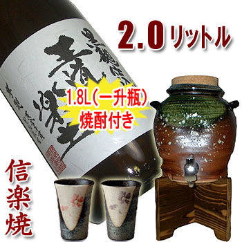 織部2.0L(焼杉木台付)・専用カップ付き・本格芋焼酎王道楽土1.8L