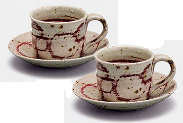 信楽焼 コーヒーカップ 水面(赤) ペアセット