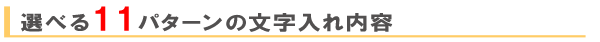 11種類のデザインの見本からお好きな文字入れパターンが選べ、自分なりのアレンジが可能です。