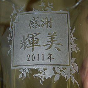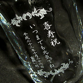専門の職人が丁寧に一文字づつ彫刻していきます。写真でもわかるようにとても細かい彫刻内容でキレイに仕上がります♪喜寿祝いなどプレゼントに最適!
