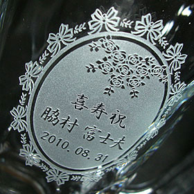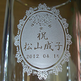 リボンで縁取った円形の中に彫刻するパターンです。女性に人気です。