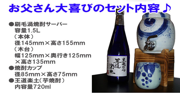 杜氏歴40年のベテランが仕込んだ本格芋焼酎と焼酎サーバーとカップがセットになった贅沢なセット内容です