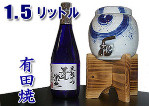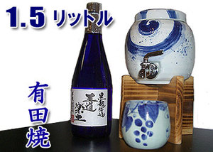 有田焼刷毛渦1.5L(木台・カップ付)+本格 芋焼酎(王道楽土)