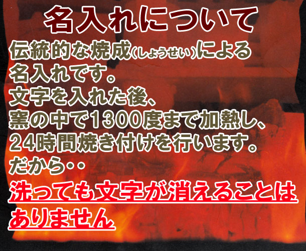 文字は1300度の高温で焼き付けるので、洗っても文字が消えることはありません。心のこもったメッセージを贈りませんか?