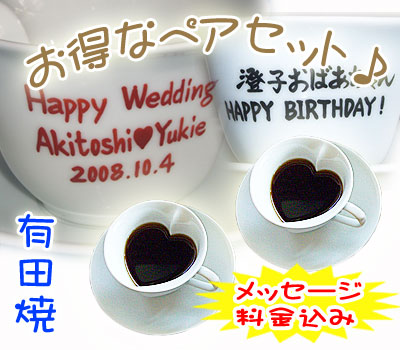 更にお得な!名入れ 有田焼 ハート型コーヒーカップペアセット