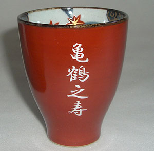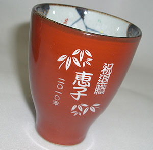 有田焼 湯呑(赤) 彩釉兎絵 (彫刻料金込)