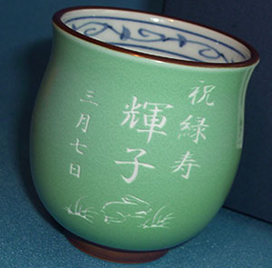 有田焼 湯呑(緑) 彩釉兎絵 (彫刻料金込)