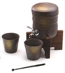 室町焼酎サーバーセット(焼酎カップ2個・木台・マドラー付き)