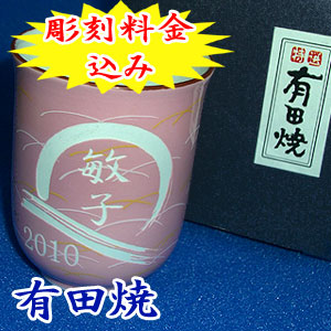 有田焼 湯呑(赤) さがの (彫刻料金込)