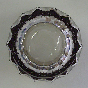 大胆にカットされたグラスで存在感があります。透明なガラスに黒いガラスを被せて色合いを調節しています☆
